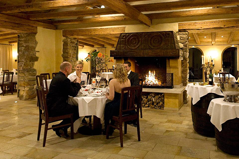 Aperitiv und exklusives 5-Gang-Menü in romantischer Atmosphäre bei Kaminfeuer und Kerzenlicht.