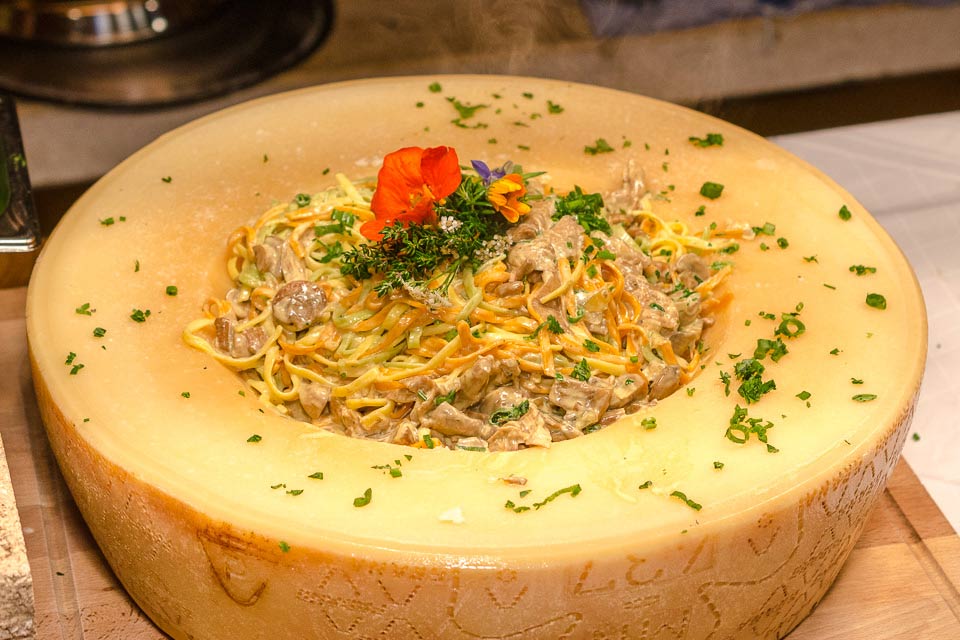 Nudeln aus dem Käselaib, hochwertige Filet & Steaks gegrillt am offenen Feuer, frischer Fisch aus der Riesenpfanne uvm.